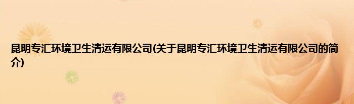本文关于昆明专汇环境卫生清运有限公司的简介就讲解完毕,希望对大家有所帮助。