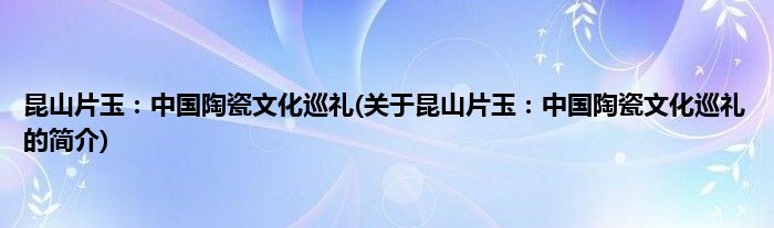 大家好,昆山片玉:中国陶瓷文化巡礼,关于昆山片玉:中国陶瓷文化巡礼的简介很多人还不知道,现在让我们一起来看看吧!
