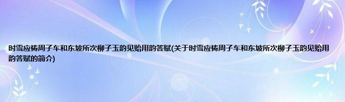 本文关于时雪应祷周子车和东坡所次柳子玉韵见贻用韵答赋的简介就讲解完毕,希望对大家有所帮助。
