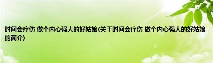 大家好,时间会疗伤,做个内心强大的好姑娘,关于时间会疗伤,做个内心强大的好姑娘的简介很多人还不知道,现在让我们一起来看看吧!