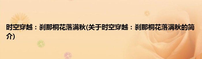 本文关于时空穿越:刹那桐花落满秋的简介就讲解完毕,希望对大家有所帮助。
