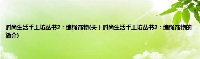 本文关于时尚生活手工坊丛书2:编绳饰物的简介就讲解完毕,希望对大家有所帮助。