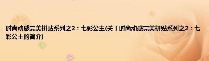 本文关于时尚动感完美拼贴系列之2:七彩公主的简介就讲解完毕,希望对大家有所帮助。