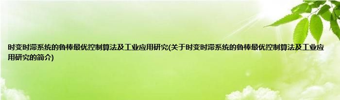 大家好,时变时滞系统的鲁棒最优控制算法及工业应用研究,关于时变时滞系统的鲁棒最优控制算法及工业应用研究的简介很多人还不知道,现在让我们一起来看看吧!