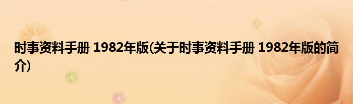 本文关于时事资料手册 1982年版的简介就讲解完毕,希望对大家有所帮助。