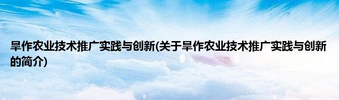 本文关于旱作农业技术推广实践与创新的简介就讲解完毕,希望对大家有所帮助。