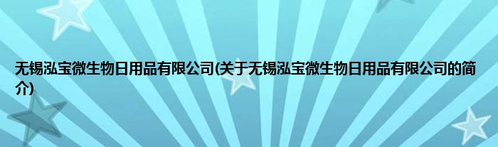 本文关于无锡泓宝微生物日用品有限公司的简介就讲解完毕,希望对大家有所帮助。