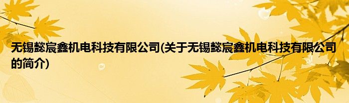 本文关于无锡懿宸鑫机电科技有限公司的简介就讲解完毕,希望对大家有所帮助。