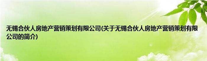 无锡合伙人房地产营销策划有限公司(关于无锡合伙人房地产营销策划有限公司的简介)