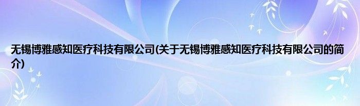 无锡博雅感知医疗科技有限公司(关于无锡博雅感知医疗科技有限公司的简介)