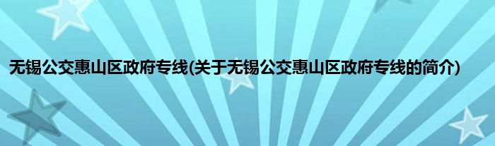 本文关于无锡公交惠山区政府专线的简介就讲解完毕,希望对大家有所帮助。