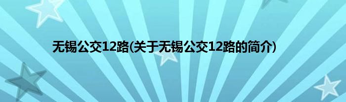 本文关于无锡公交12路的简介就讲解完毕,希望对大家有所帮助。