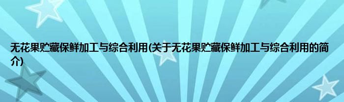 无花果贮藏保鲜加工与综合利用(关于无花果贮藏保鲜加工与综合利用的简介)