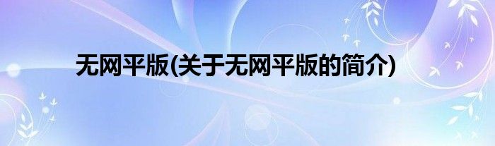 大家好,无网平版,关于无网平版的简介很多人还不知道,现在让我们一起来看看吧!