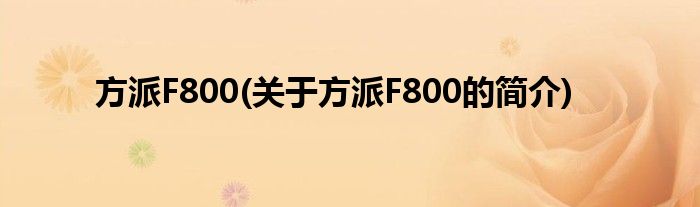 本文关于方派F800的简介就讲解完毕,希望对大家有所帮助。