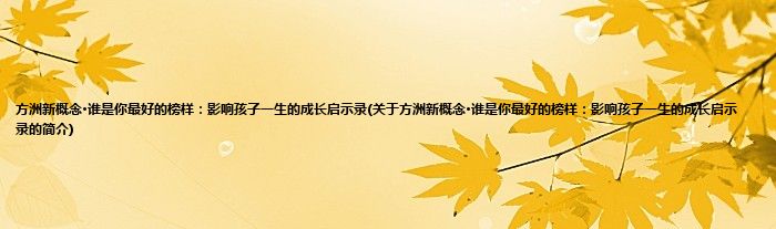 本文关于方洲新概念·谁是你最好的榜样:影响孩子一生的成长启示录的简介就讲解完毕,希望对大家有所帮助。