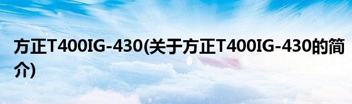 大家好,方正T400IG-430,关于方正T400IG-430的简介很多人还不知道,现在让我们一起来看看吧!