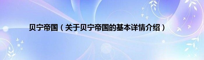 大家好我是小蝌蚪,贝宁帝国,关于贝宁帝国的基本详情介绍很多人还不知道,那么现在让我们一起来看看吧!