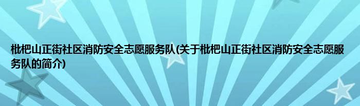本文关于枇杷山正街社区消防安全志愿服务队的简介就讲解完毕,希望对大家有所帮助。