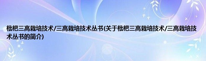 本文关于枇杷三高栽培技术/三高栽培技术丛书的简介就讲解完毕,希望对大家有所帮助。