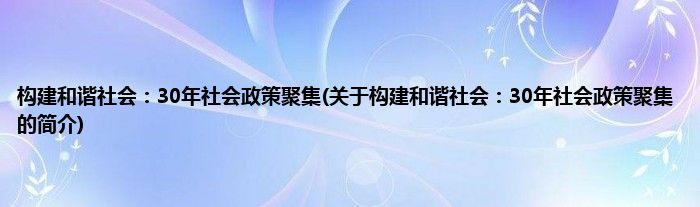 本文关于构建和谐社会:30年社会政策聚集的简介就讲解完毕,希望对大家有所帮助。