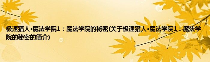 大家好,极速猎人·魔法学院1:魔法学院的秘密,关于极速猎人·魔法学院1:魔法学院的秘密的简介很多人还不知道,现在让我们一起来看看吧!