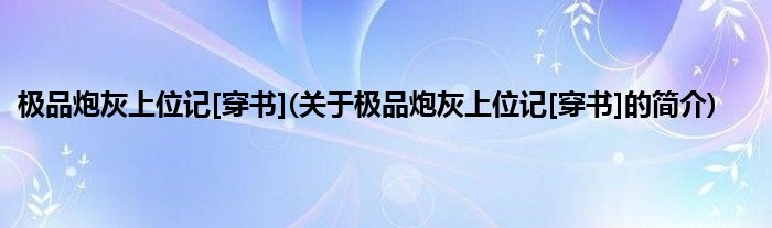 本文关于极品炮灰上位记[穿书]的简介就讲解完毕,希望对大家有所帮助。