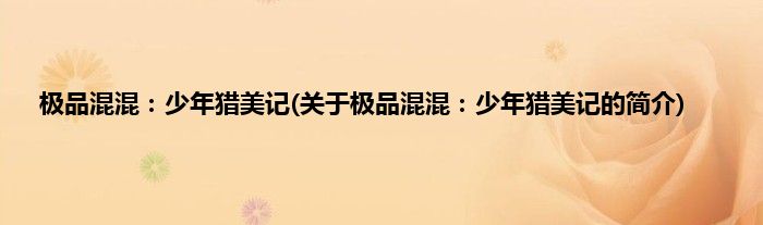 本文关于极品混混:少年猎美记的简介就讲解完毕,希望对大家有所帮助。
