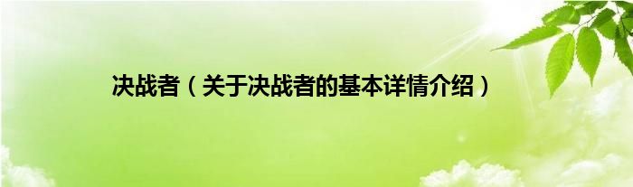 本文关于决战者的基本详情介绍就讲解完毕,希望对大家有所帮助。