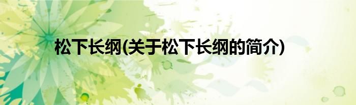 大家好,松下长纲,关于松下长纲的简介很多人还不知道,现在让我们一起来看看吧!