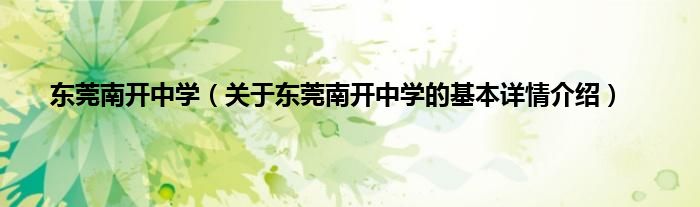东莞南开中学(关于东莞南开中学的基本详情介绍)
