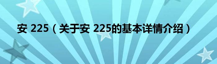 本文关于安 225的基本详情介绍就讲解完毕,希望对大家有所帮助。