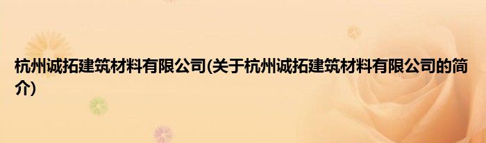 本文关于杭州诚拓建筑材料有限公司的简介就讲解完毕,希望对大家有所帮助。