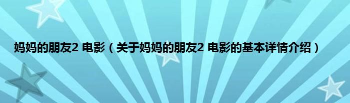 本文关于妈妈的朋友2 电影的基本详情介绍就讲解完毕,希望对大家有所帮助。