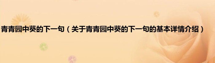本文关于青青园中葵的下一句的基本详情介绍就讲解完毕,希望对大家有所帮助。
