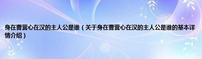 本文关于身在曹营心在汉的主人公是谁的基本详情介绍就讲解完毕,希望对大家有所帮助。