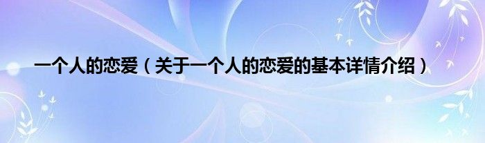 本文关于一个人的恋爱的基本详情介绍就讲解完毕,希望对大家有所帮助。
