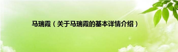 本文关于马瑞霞的基本详情介绍就讲解完毕,希望对大家有所帮助。