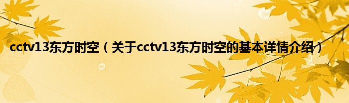 本文关于cctv13东方时空的基本详情介绍就讲解完毕,希望对大家有所帮助。
