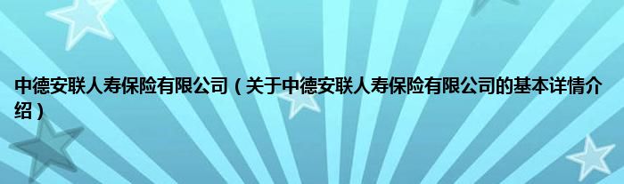 本文关于中德安联人寿保险有限公司的基本详情介绍就讲解完毕,希望对大家有所帮助。