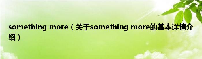 本文关于something more的基本详情介绍就讲解完毕,希望对大家有所帮助。