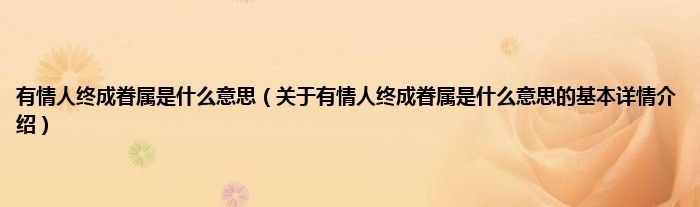 本文关于有情人终成眷属是什么意思的基本详情介绍就讲解完毕,希望对大家有所帮助。
