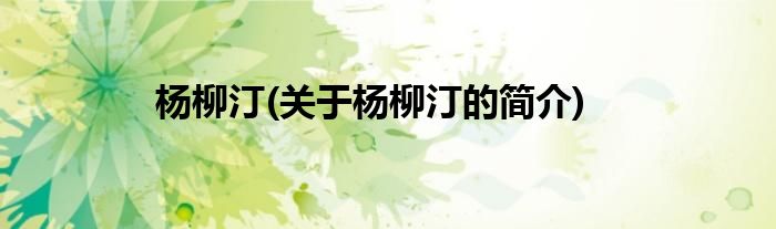 本文关于杨柳汀的简介就讲解完毕,希望对大家有所帮助。