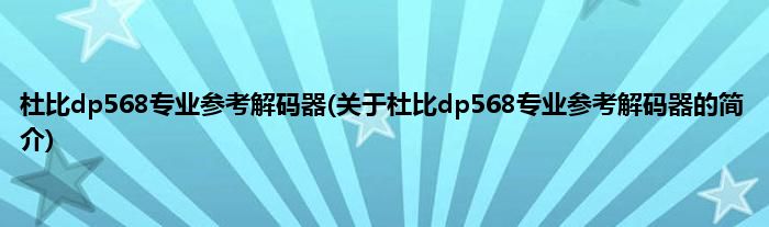 本文关于杜比dp568专业参考解码器的简介就讲解完毕,希望对大家有所帮助。