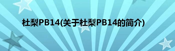 大家好,杜梨PB14,关于杜梨PB14的简介很多人还不知道,现在让我们一起来看看吧!