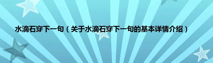 本文关于水滴石穿下一句的基本详情介绍就讲解完毕,希望对大家有所帮助。