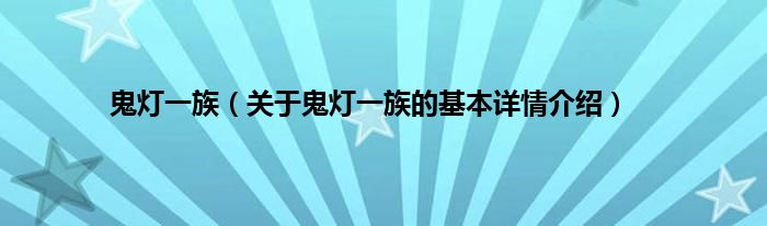 大家好我是小蝌蚪,鬼灯一族,关于鬼灯一族的基本详情介绍很多人还不知道,那么现在让我们一起来看看吧!