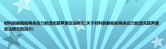 大家好,材料的缺陷和残余应力的激光超声测定法研究,关于材料的缺陷和残余应力的激光超声测定法研究的简介很多人还不知道,现在让我们一起来看看吧!