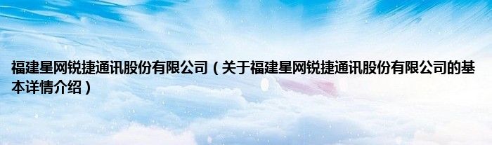 本文关于福建星网锐捷通讯股份有限公司的基本详情介绍就讲解完毕,希望对大家有所帮助。