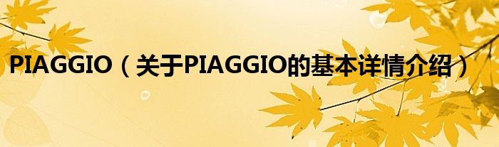 本文关于PIAGGIO的基本详情介绍就讲解完毕,希望对大家有所帮助。